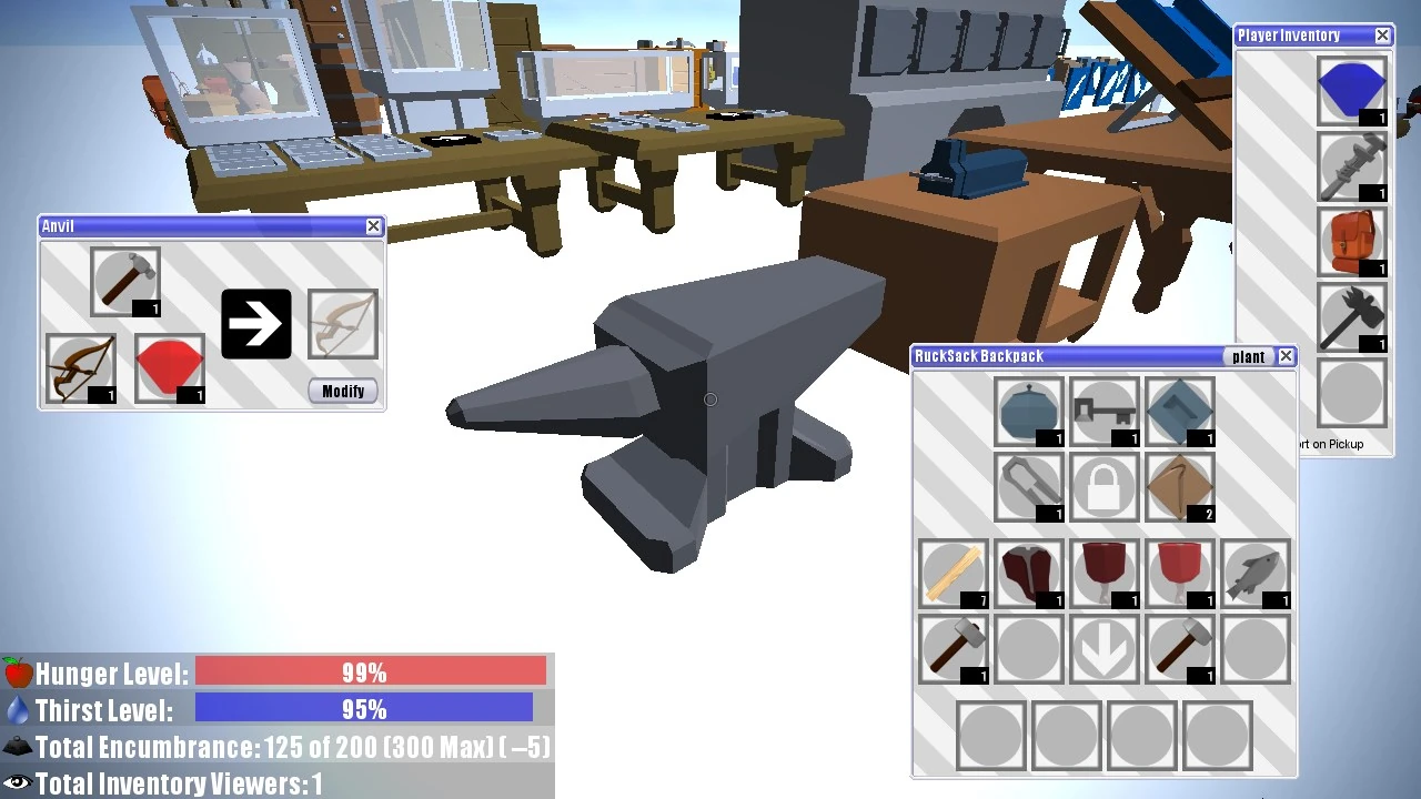 RPGs Extended (or RPGx) is a mod that adds various features to Blockland. It started out as a simple storage system, but more and more functionality was added to it over time, and it expanded into a full-fledged RPG system. In addition to item storage, RPGx features backpacks, crafting, smelting, encumbrance, item durability, hunger & thirst, locks & lock-picking, shops and much more!